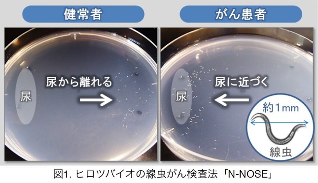 線虫を使うがん検査の技術は「n-nose(エヌ・ノーズ)」と名付けられ、同研究にあたっていた九大大学院理学研究院生物科学部門助教の広津崇亮(たかあき)氏が16年9月、この技術の事業化を目指すベンチャー、ヒロツバイオを立ち上げた。
