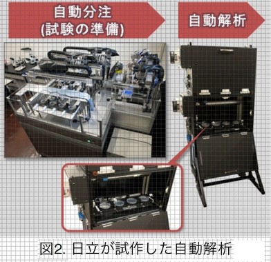 日立は、一部を自動化した線虫がん検査自動解析装置を試作し日立健保主催のレディース健診受診者の尿検体と海外バイオバンクから購入した尿検体の化学走性試験を実施。検査者が手作業で実施した場合と同等の精度でがん患者をがんだと判定できたという。
