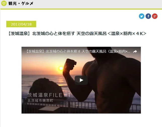 茨城県の温泉を紹介する動画に、筋肉隆々な男性が出演していることが話題になっている。
