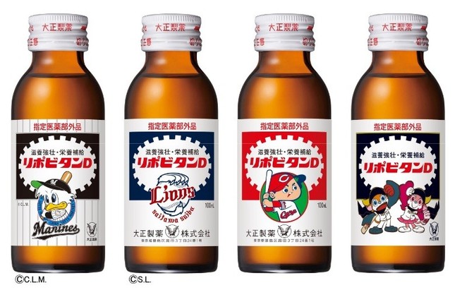 「リポビタンD プロ野球球団ボトル」は、それぞれの球団のマスコットキャラクターをあしらった限定ボトル。DeNAのものは「スターマン」を、中日のものには「ドアラ」をラベルにした。