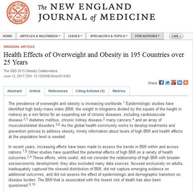 報告によると2015年にBMIの高さが関与して死亡した人は400万人にのぼり、これは死者数全体の7.1%を占める。IHMEのディレクター、クリストファー・マレー博士は「体重増を気にしない人はそれに伴うリスクも気にしていない。心血管系疾患、糖尿病、がん、また、ほかの命を危うくするリスクであるにもかかわらず」と述べている。