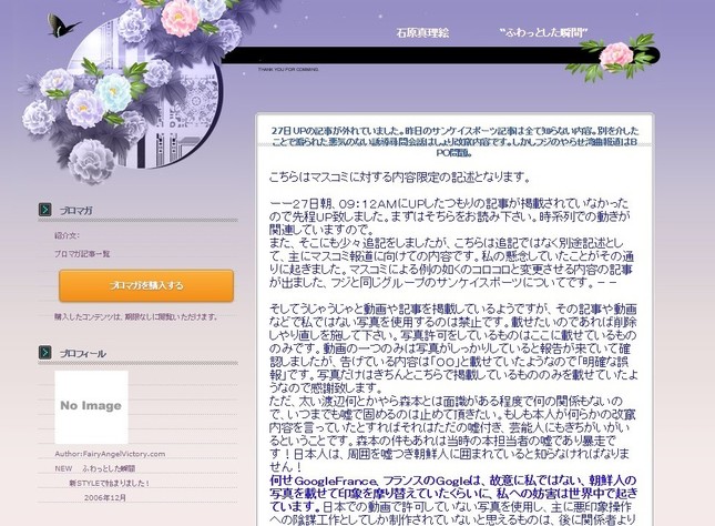 「この故意なる悪質な印象操作での誤報を流した罪は許されない、これは対マスコミへの問題として、これまでにも何百回となく長年に渡りマスコミからはあらゆる方向から私にのみ集中した大々的な営業妨害と人権侵害、虚偽報道、虚偽記述をされてきた歴史も踏まえ、今回の湾曲隠蔽誤報道をBPO問題とすることを検討開始しました」(原文ママ)