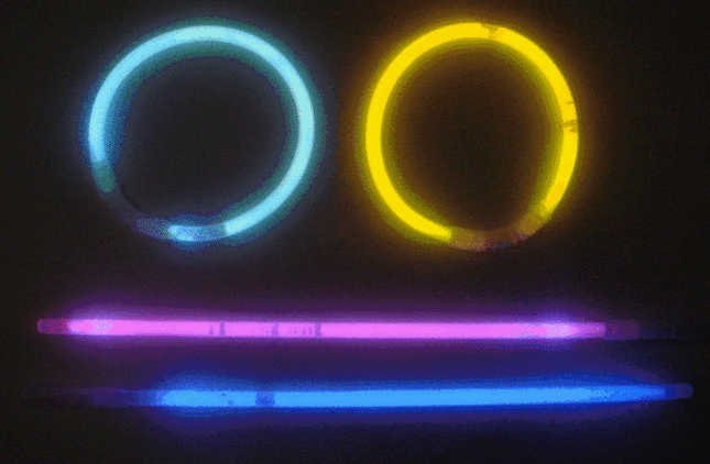 消費者庁の発表資料によると、ケミカルライトにはブレスレット型や棒状などの製品があり、軽く折り曲げることで発光する。ポリエチレンチューブの中にガラスアンプルが入った二重構造になっており、軽く折り曲げた時にガラスアンプルが割れ、中に入っている発光物質が外側の液体と混合、化学反応して光る仕組みだからだ。