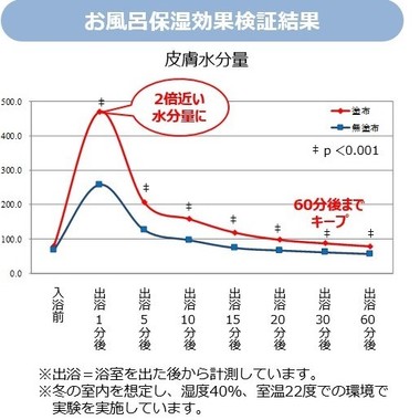 以上の結果から、同研究所では、お風呂上りに室外に出て保湿ケアをするのではなく、風呂場の中でケアをする「お風呂保湿」を勧めている。