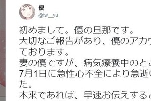 漫画家のつかじ俊さんが2017年9月25日、27歳の若さで死去した。つかじさんのツイッターとブログを通して10月1日に家族から報告があり、生前親交のあった人やファンらからお悔やみの声が寄せられている。つかじさんは2016年3月19日のブログで、進行がんを患っていることを明かしていた。発覚当時、ステージ「2~3b」だったという。ツイッターとブログで闘病生活綴る1990年9月12日生まれ。27歳の誕生日を迎えたばかりだった。月間コミック誌『ヤングエース』(KADOKAWA)で2016年5月号から『きょうのきゅうしょく!』を連載開始予定だったが、1・2話掲載時点でがんを患っていることが判明し、連載中止となったことが同号で発表されていた。つかじさんは連載中止について、2016年4月4日のツイートで、「運の悪いことに大腸がんを患っている事がわかりました。残念ながら早期ではなかったので長期療養が必要になり連載を止めていただきました」と伝えていた。つかじさんにとって同作品は初の連載だった。連載中止後も同人誌での活動を続け、イベントや委託販売で作品を販売するなど、創作活動を続けていた。その傍ら、ツイッターとブログでは闘病生活について綴っていた。9月8日には主治医からの話を受け、「終わりが見えてきてしまった」「残された時間も少なくなってきたみたい」などとブログに記し、読者から心配や声援が寄せられていた。ヤングエース「突然の訃報で未だに信じられません」亡くなったのは、9月12日の誕生日に「今日で27歳になりました。なんとか生きる事ができました」とツイートしてからわずか2週間後のことだった。「家族一同」として10月1日、つかじさんのツイッターとブログで「つかじ俊は 平成29年9月25日に安らかに旅立ちました。 生前、作品を愛して下さいました皆様 又、お世話になりました先生、出版関係の皆様には深く感謝申し上げます。更に、闘病に関して多くの方々から応援をいただき、励ましの言葉を掛けて下さいましたことは、どれ程本人の心の支えになっていたか、深く深く感謝と共にお礼申し上げます。いつの日も、心の片隅に思い出として残していただけることを念じて、旅立ちの報告をさせていただきます」と報告がされた。つかじさんの直筆イラストの写真も掲載されている。訃報を受けツイッター上には、「才能のあるお若い命、とても悲しいです」「もっと沢山のキャラクターを生み出して欲しかっただけに残念です」「先生のかわいらしい女の子たちが好きでした...ご冥福をお祈りします」などお悔やみの声が多く寄せられている。つかじさんの漫画を掲載していた『ヤングエース』も2日、公式ツイッターを更新し、「『きょうのきゅうしょく!』の作者・つかじ俊先生がお亡くなりになりました。突然の訃報で未だに信じられません。心よりご冥福をお祈りいたします」と哀悼の意を表している。