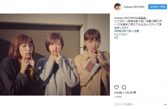 女優の本田翼さん(25)が、2017年10月26日、女優の綾瀬はるかさん(32)、広末涼子さん(37)との3ショットを自身のインスタグラムに公開した。