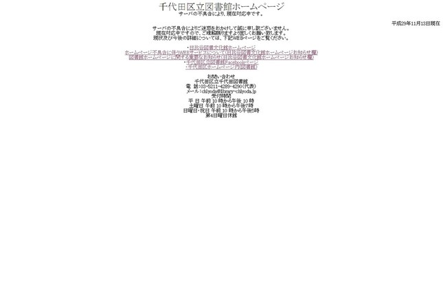 2017年11月28日昼現在、千代田区立図書館ホームページにアクセスすると、