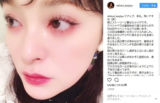 女優の貫地谷しほりさん(31)が2017年12月4日にインスタグラムを更新し、メイクのこだわりを語るとともに自身の顔をドアップで映した短い動画をアップした。