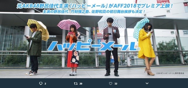 2018年4月18日夕、アイドルグループ「SDN48」の元メンバー・野呂佳代さん(34)の主演映画タイトルが、思わぬカタチでツイッターの「トレンド」欄に浮上した。