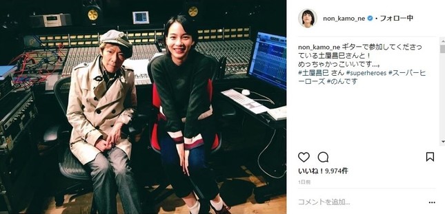2018年6月9日に「ギターで参加してくださっている土屋昌巳さんと!めっちゃかっこいいです...。」とのコメント共に投稿された。写真は音楽スタジオのミキシングルームで、のんさんと土屋さんが椅子に座っているものだ。