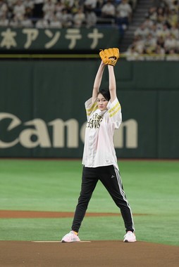 女優の吉本実憂さん(21)が2018年7月10日、東京ドームで行われたプロ野球・福岡ソフトバンクホークス対北海道日本ハムファイターズの始球式に登板した。