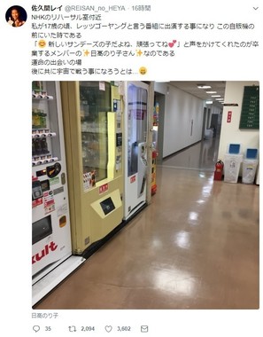 2018年8月23日、「NHKのリハーサル室付近」と題して、自販機が数台並ぶ廊下のような場所の写真が投稿された。佐久間さんは続いて、「私が17歳の頃、レッツゴーヤングと言う番組に出演する事になり この自販機の前にいた時である」とした上で、