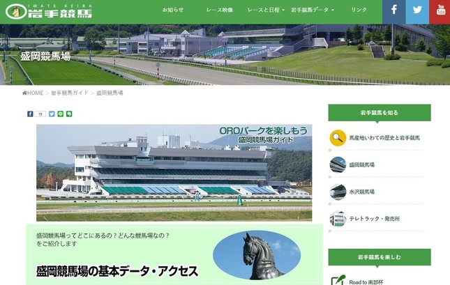 盛岡競馬場は、内に1400mのターフコース、外に1600mのダートコースを配した競馬場で、盛岡駅からバスで30分程度の周囲を緑に囲まれた場所にある。6000人を収容し、今年9月にはナイター競走にも対応可能な照明塔がダートコースに設置された。