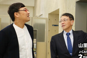 東京大学地震研究所教授で政府の地震調査委員会委員長を務める平田直さん(左)と、J-CASTニュース名誉編集長の山里亮太(南海キャンディーズ)