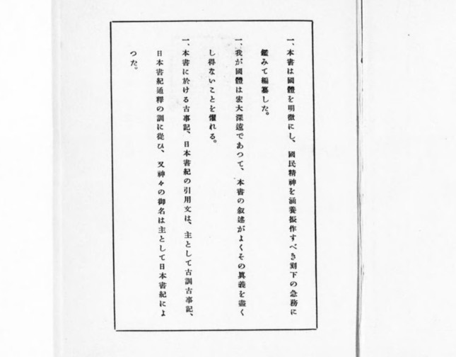 (1)本書は国体を明徴にし、国民精神を涵養振作すべき刻下の急務に鑑みて編纂した。