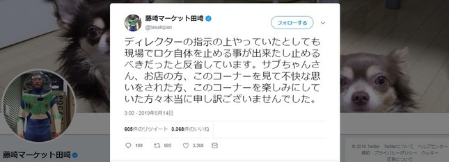 • ツイッターに謝罪文を投稿した「藤崎マーケット」田崎さん