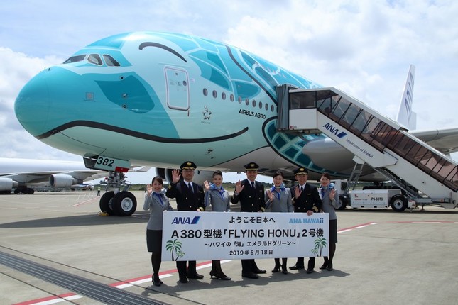 ANAのA380型機には、ハワイでは神聖な生き物だと考えられているウミガメのハワイ語の愛称「ホヌ」にちなんで、「空飛ぶウミガメ」の意味を持つ「FLYING HONU」という愛称がついている。