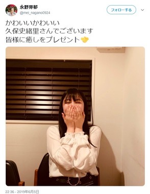 女優の永野芽郁さん(19)がツイッターでアイドルグループ・乃木坂46の久保史緒里さん(17)の写真を公開した。