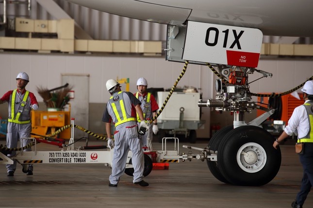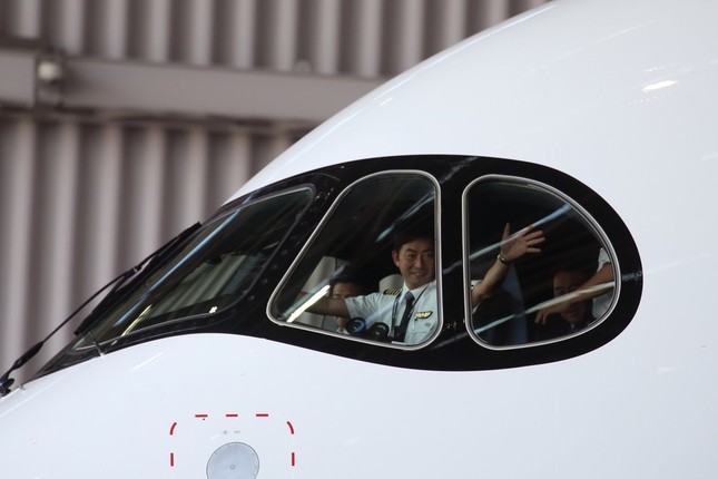 A350には標準型の900型と長胴型の1000型の2種類があり、今回到着したのは900型だ。900型は全長66.8メートル、全幅64.75メートル。777-200型機と比べてそれぞれ3、4メートル程度長い。標準座席数は777-200の375席よりも若干少ない369席だ。 初号機~3号機までは特別塗装を施され、機体後部に「A350」の大きなロゴをあしらった。色は初号機から順に「挑戦のレッド」「革新のシルバー」「エコのグリーン」だ。初号機は6月11日(現地時間)に仏・トゥールーズのエアバス社工場でJALに引き渡され、13日午後(同)に日本に向けて出発。JALの植木義晴会長ら関係者17人を乗せ、約12時間の飛行を経て7時56分に羽田空港に到着した。
