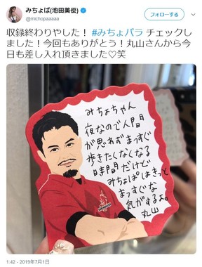 タレントのみちょぱこと池田美優さん(20)が元女子サッカー選手の丸山桂里奈さん(36)からもらったメモを披露した。
