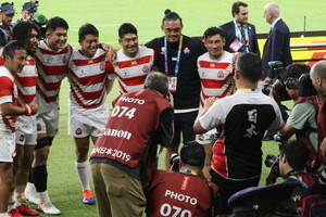 2019年9月28日、ラグビー日本代表は、宿敵アイルランド代表に「19-12」で勝利を収めた。獲得した勝ち点は「4」(日本は1トライだったため、ボーナスポイントはなし)。2戦を終え、合計の勝ち点は「9」となり、予選「プールA」を首位で折り返した。今回のアイルランド戦を含めた今後の戦い方について、元日本代表SH(スクラムハーフ)で、現キヤノン・イーグルスGM(ゼネラルマネジャー)を務める永友洋司氏に聞いた。両国のモチベーションは上がってくる永友氏は、今回の勝利に開口一番、「素晴らしかったですね」と、声を弾ませた。しかし、逆に「気になる...と言うか、この先が要注意」と話す。悲願の「ベスト8」へ向け、日本代表が大きく前進したことは間違いない。しかし逆に、サモア(10月5日=愛知県豊田スタジアム)、スコットランド(10月13日、横浜国際競技場)の2戦に向け、「日本がアイルランドに勝ったことによって(今後、戦う両国の)モチベーションが上がるでしょ。現在、首位の日本を倒せばいい...って感じになるよね」では、サモア、スコットランドを突き放すには、どうしたらいいのか? 永友氏は2つのポイントを挙げた。5メートルライン「外側」の勝負カギにまず、「ボーナスポイント(4トライ以上か7点差以内での敗退)には、こだわらなくていい。2戦で勝ち点『9』があるんだから。何しろ『勝つ』こと。だから、トライだけじゃなく、ショット(ペナルティーキック)なんかで、点数を取っていけばいい」また、アイルランド戦で唯一のトライとなった福岡堅樹選手(WTB=ウイング・スリークォーター・バックス)のトライを挙げた場面も「ポイント」だと話す。ラグビーのタッチライン際には「5メートルライン」というものが引かれているが、その「外側」の勝負がキーとなってくるようだ。「今回(アイルランド戦)の福岡選手のトライのように、タッチから『5メートル』の攻防が重要。サモア、スコットランドともに肉体的なフィジカルが強い。日本はパスやラン、キックで相手を振り回す。その際には、両サイドの『5メートル』で勝負した方がいい」アジア初開催となった「ラグビーW杯2019日本大会」。悲願の8強(決勝トーナメント進出)へ、日本代表の準備に期待したい。(J-CASTニュース編集部 山田大介)