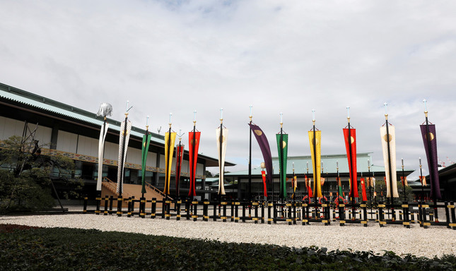 即位の礼が行われた皇居。直前までの荒天にもかかわらず、正殿の儀のころには青空が覗いた(写真:代表撮影/ロイター/アフロ)