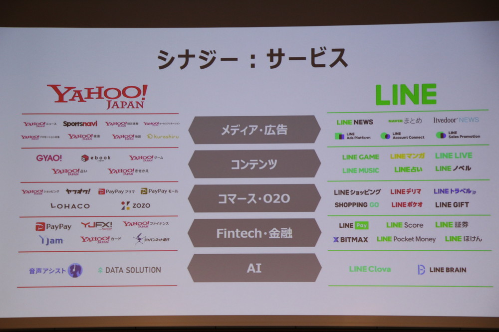 会見では統合の詳細が説明され、ソフトバンクと、LINEの親会社である韓国ネイバー(NAVER)がそれぞれ50%ずつを出資する統合会社を設ける。その傘下にZHDを置き、さらにZHDの子会社として、LINEの事業承継会社やヤフーが入る。