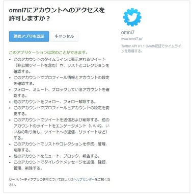 指摘されているのは、ツイッター連携だ。連携時に9つの権限を許可する必要があるが、ツイート送信・削除、プロフィール変更、フォロー解除、ダイレクトメール確認など、私的な色合いが強い項目もある。