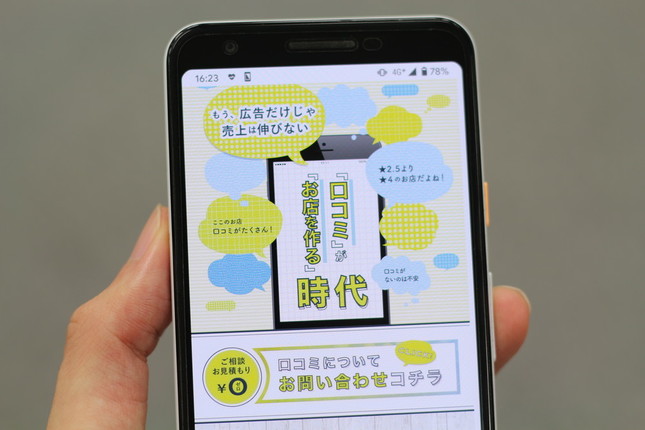 クチコミ代行のA社は、サイト情報によると、飲食店や美容院、病院、電子商取引(EC)サイト向けに、口コミの投稿サービスを販売する。