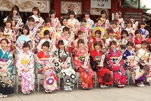 成人の日にあたる2020年1月13日、AKB48グループの新成人メンバーが「アキバの守護神」とも呼ばれる東京・外神田の神田明神で、あでやかな振り袖姿を披露した。今回の新成人メンバーは1999年4月2日~2000年4月1日生まれの42人。AKB48グループの成人式では、その年の世代を「●●世代」と命名するのが慣例で、20年は「令和出発世代」。その思いをNGT48の本間日陽(ひなた)さんは「令和初の新成人ということで、新しい時代をこの世代が切り開いていけるように、自分たちが先頭を切っていけるように」などと話した。HKT48のメンバーからは、指原莉乃さん(27=19年卒業)から高価な成人祝いを贈られたことも明かされた。NGT48本間日陽「ファンの方に心配や不安を与えてしまうことも多い1年」AKB48グループにとっての2019年は、NGT48の山口真帆さん(24=19年卒業)の事案をめぐる対応で社会から厳しい目を向けられたり、グループの顔でもあった指原さんの卒業でパワーダウンを指摘されたりしただけに、改めてグループを盛り上げていこうとする決意表明の声もあがった。NGT48のチームカラーである白と赤を基調にした振り袖に身を包んだ本間さんは、19年を「周りの方々に支えられた1年」だったと回顧。「ファンの方に心配や不安を与えてしまうことも多い1年だったと思うが、その中で熱心に支えて下さるファンの皆様、スタッフの皆さん、メンバーの皆さんに、すごく私自身支えられた」などと関係者への感謝を延べながら、20年に向けて決意表明した。「いつも支えてくださる皆さんに感謝の気持ちを込めて、ひとつひとつ精一杯力を込めて活動していきたいし、もっともっと48グループを盛り上げていけるようにがんばっていきたい」松岡はな「七五三じゃなくて成人式だったもんっ」指原さんが所属していたHKT48の田島芽瑠(たしま・める)さんは、指原さんの卒業で「ファンの方から不安(の声)だったり、『大丈夫なのか?』といった声を沢山いただいた」とした上で、20年春に専用劇場が開設されることや、指原さんが新公演「いま、月は満ちる」を書き下ろすことを挙げながら、「皆さんに、もっともっと良いご報告ができたら」と意気込んだ。HKT48の松岡はなさんは、「年相応に見られなくて、まだ16歳なんじゃないか、というのをすごくファンの方に言われるので、今年はさっしーさんやこじはるさん(編注:小嶋陽菜さん=31、17年卒業)みたいな美しいきれいな女性になれたら」と話すが、指原さんがツイートした文章は「めるからHKTメンバーの成人式写真、はなから七五三の写真が届いた」。松岡さんも「七五三じゃなくて成人式だったもんっ」と「応戦」していた。 田島さんは、指原さんから成人祝いとして小顔サロンでの施術をプレゼントされた。「自分では行けないような額」だといい、「昨日福岡から着いて(都内のサロンに)向かって、ゴリゴリやってもらってきたので、今日かわいくいられるのは、さしこちゃんのおかげ」と指原さんに感謝。田島さんと松岡さんは、指原さんと成人祝いに出かける予定で、田島さんは「おしゃれなシャンパン」で乾杯することを心待ちにしていた。(J-CASTニュース編集部 工藤博司)