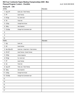 ツイッター上では「ボーヤンの4Aこれは間違いよね?」「記載ミスよな?」「4A+1Eu+3Sに目を疑う。3Aの誤植だろうけど」と単なる表記ミスを指摘する声もある。そもそも単発ジャンプでなく、難度が上がる連続ジャンプに4回転アクセルを組み込んでいることも、誤植が疑われる一因となっている。その可能性は否定できないが、一方で予定構成表には、先述した略記に加えて「Quad Axel + Single Euler + Triple Salchow」とクワド(4回転)アクセルの文字が明記されている。