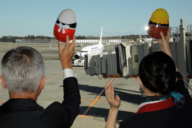 初便はJL423便(ボーイング737-800型機)で、乗客117人を載せて11時30分に出発。この便の乗客の定員は144人。新規路線の初便は「ほぼ満員」で出発することが多い中での81.3%という搭乗率だ。新型コロナウイルスにともなう自粛ムードが影を落とした可能性もある。