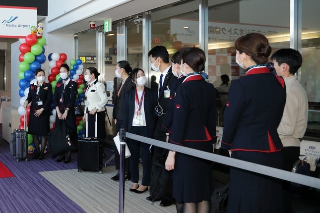 すでに航空各社では地上係員や客室乗務員(CA)もマスク姿で接客しており、セレモニーを取材する報道陣もマスクの着用を求められた。来賓として招かれていた、空港に隣接する多古町の所一重町長は、前日の2月27日に明らかになった政府の休校要請に対応するために欠席。飾りつけは搭乗ゲートに看板とマトリョーシカ風の風船が飾られた程度で、式典の内容も関係者3人のあいさつのみだった。