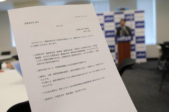立憲民主党は国民民主党に対して5項目の「申し入れ」をしている。両党が解党して新党を結成し、党名を「立憲民主党」とすることが柱だ
