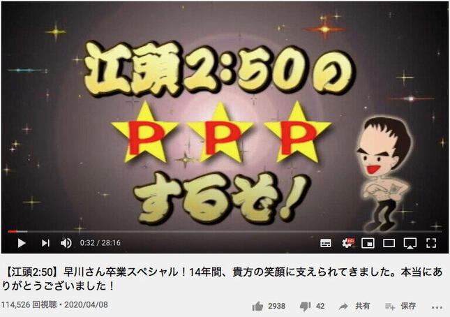一方、江頭さんは2020年2月に公式YouTubeチャンネル「エガちゃんねる」を始動。アカウント開設から9日でチャンネル登録者数100万人を超えるなど、一躍人気ユーチューバーとなった。また、PPPで長年にわたり江頭さんを支えた早川さんも、4月の放送で番組を卒業していた。