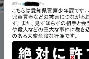 高齢者らを狙う「特殊詐欺」の実行役を詐欺グループが募集したり、「援助交際」や「パパ活」などと称して子どもが性行為の相手を募ったりする手段として多用されているのがSNSだ。全国の警察で、疑わしいツイートに警告メッセージをリプライすることで犯罪を未然に防ごうとする取り組みが広がっている。この手法を先行して実施している愛知県警の協力を得て、SNS上で横行する「危ないやり取り」を再現した。