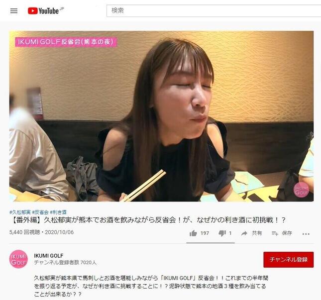 タレントの久松郁実さん(24)が2020年10月6日に自身のYouTubeチャンネル「IKUMI GOLF」で公開した動画がファンの間で話題だ。