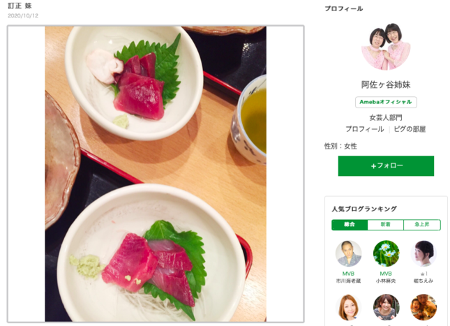 美穂さんは小鉢に入った2人分のお刺身の写真をアップしていたが、見比べると美穂さんのマグロのお刺身の方が若干脂が乗っており、