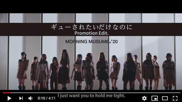 モーニング娘。'20の69thシングル曲「ギューされたいだけなのに」(12月16日発売予定)のMVが2020年11月28日に公開された。