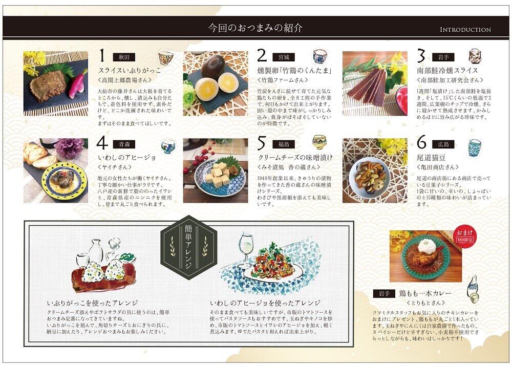 おつまみはそれぞれ1~3回で食べきれる量とのこと。初回のみ、おまけで「鶏もも一本カレー」(岩手)が付いてくるという。
