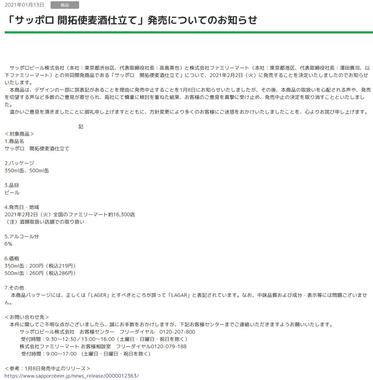サッポロビールは2021年1月13日、ラベルデザインに誤表記が見つかった新商品のビール「サッポロ 開拓使麦酒仕立て」について、発売中止を撤回すると発表した。