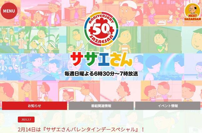 アニメ『サザエさん』(フジテレビ系)で2021年2月14日、バレンタインデーに合わせた特別版『バレンタインデースペシャル』が放送された。