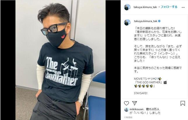 木村さんは現在、大ヒット映画『マスカレード・ホテル』(2019年公開)の続編映画『マスカレード・ナイト』(2021年9月公開予定)の撮影を行っていることを明かしている。