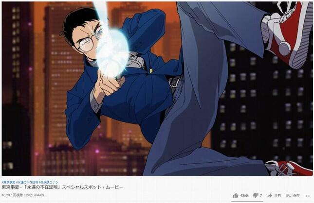 「世良真純」のバイクに乗ったボーカルの椎名林檎さんが「白か 黒か 謎か」と呟くと、コナンシリーズのロゴをイメージした「東京ジヘン 永遠の不在証明 The Seaclet Alibi」のタイトルが現れる。