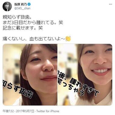 さらにさかのぼると、2017年5月には、HKT48(当時)の指原莉乃さんがツイッターで、「親知らず抜歯。まだ3日目だから腫れてる。笑 記念に載せます。笑」と明かしつつ、やはり両頬が腫れ上がった自撮り写真を投稿。「痛くないし、血も出てないよ〜」という健在をアピールするこれらのメッセージに対しては、「めっちゃ腫れてますやんwww」「丸い、かわいい(笑)」といった、その姿を愛でるリプライが相次いだのだった。