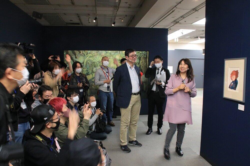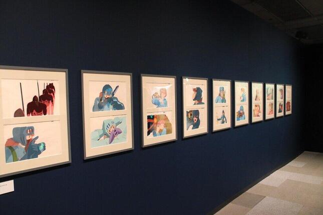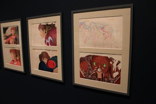トーク後は、展覧会の見どころ紹介が行われた。今回の見どころの1つは初公開となる「風の谷のナウシカ」のセル画。島本さんはセル画が展示されている紺色のパネルにサインした。しかし、ここでハプニングが発生した。