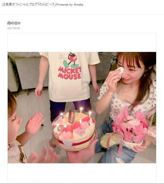 母の日で涙を流した辻希美さん。辻さんのブログ「のんピース」の投稿より