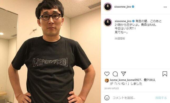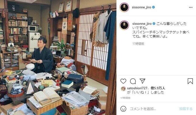 お笑いコンビ「シソンヌ」のじろうさんが2021年6月9日、文豪風に撮影された自らの写真をインスタグラムで公開した。