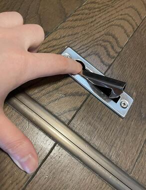 多くの床下収納には、蓋を持ち上げるための取っ手が設けられている。使わないときは床に沿うように平らになるのだが、なんらかの問題があり立ち上がったままになっていることもある。