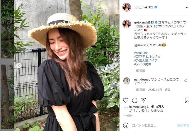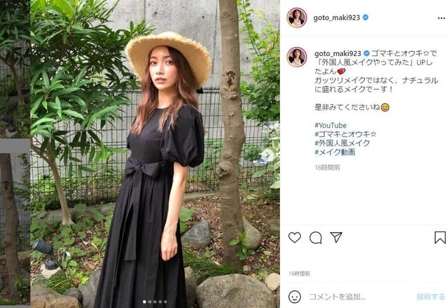 後藤さんは2021年7月7日、インスタグラムを更新。「外国人風メイクやってみた」という企画に挑戦した動画を、自身のYouTubeチャンネルにアップしたと報告した。